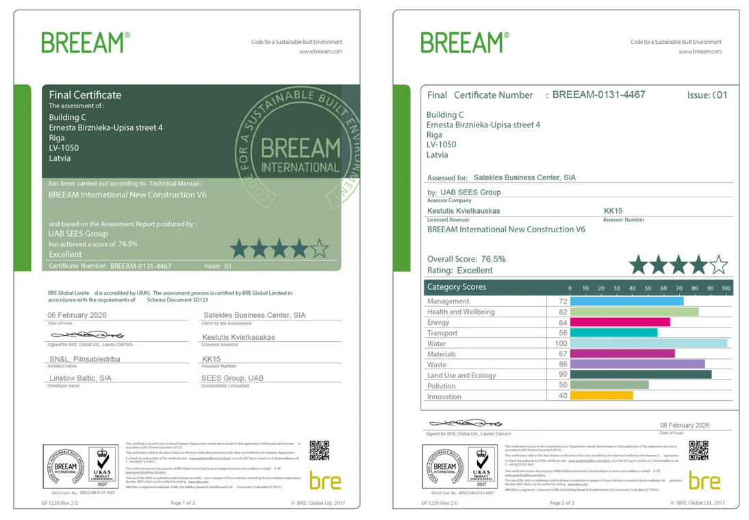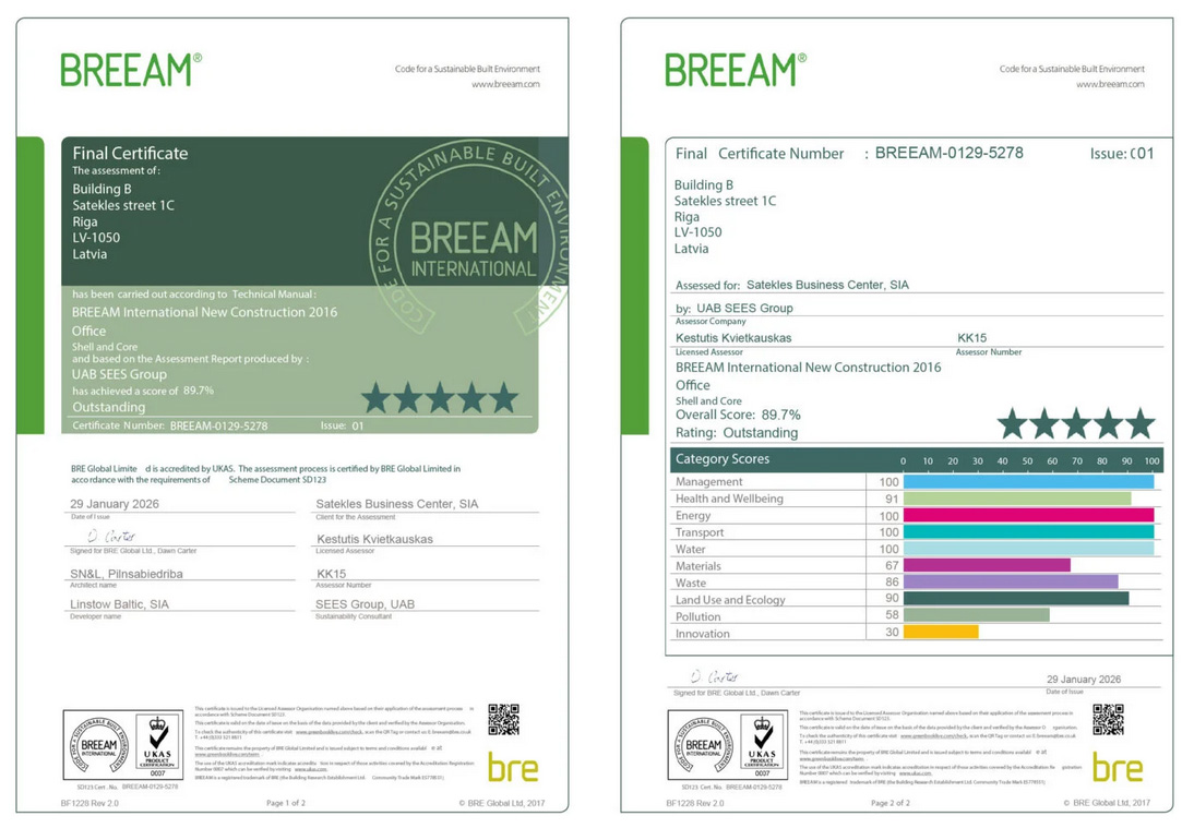 SATEKLES BIZNESA CENTRS ir A klases biroju komplekss, kas paredzēts tālredzīgiem uzņēmumiem, kuri augstu vērtē atrašanās vietu pilsētas centrā, urbāno dinamiku, augstu kvalitāti un ilgtspējību. Tas apvieno mūsdienīgu darba vidi ar izciliem ilgtspējas standartiem, radot iedvesmojošu telpu darbinieku labbūtībai un produktivitātei.