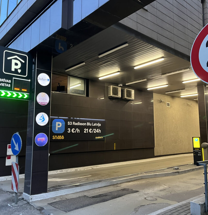 - Pazemes stāvvieta zem Radisson Blu Latvija Conference & Spa Hotel (iebraukšana / izbraukšana no Baznīcas ielas)